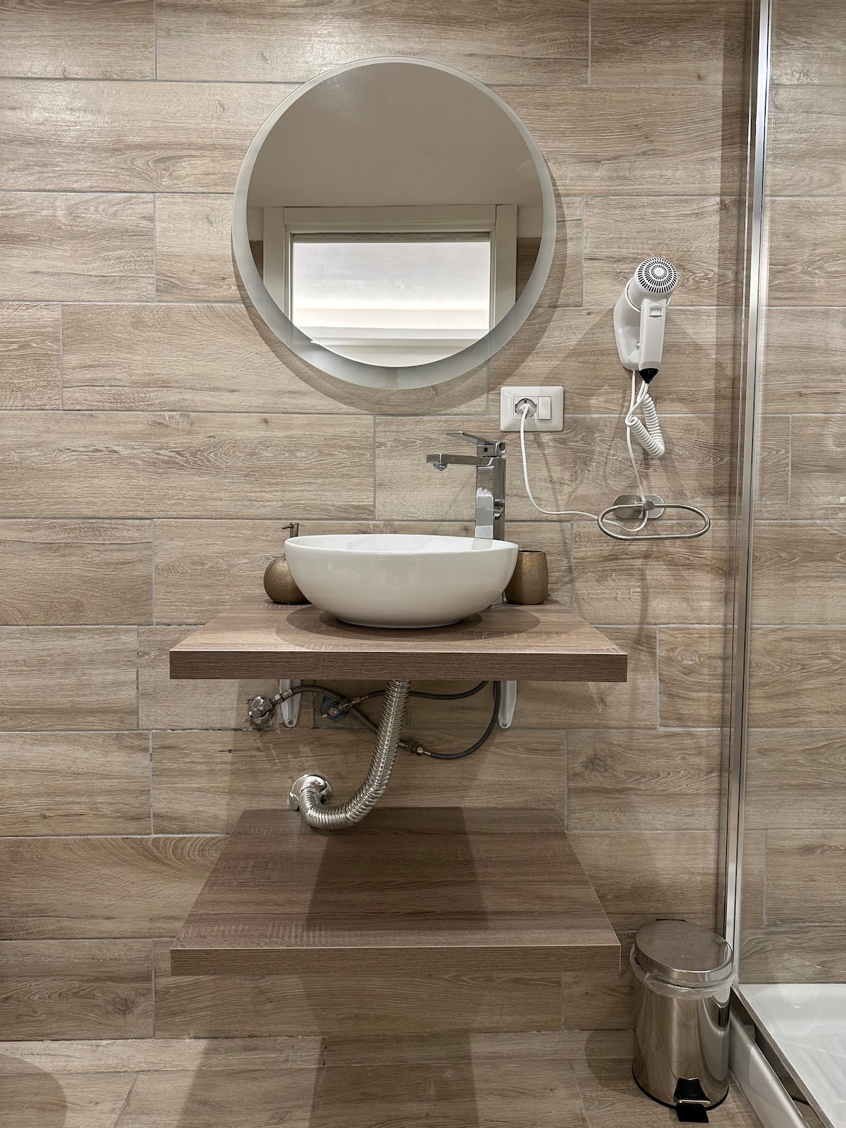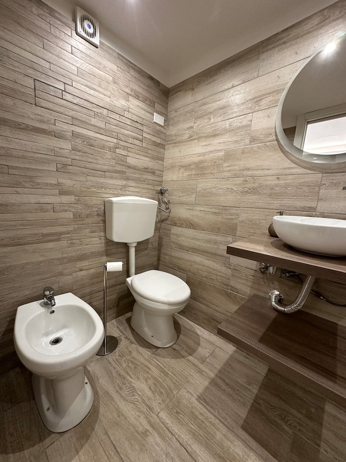 Il bagno è dotato di doccia, bidet, asciugacapelli e teli da bagno, per garantire il massimo comfort durante il soggiorno.